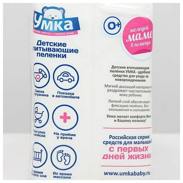 Умка Пеленки впитывающие одноразовые детские с липким слоем 60 х 60 см 5 шт