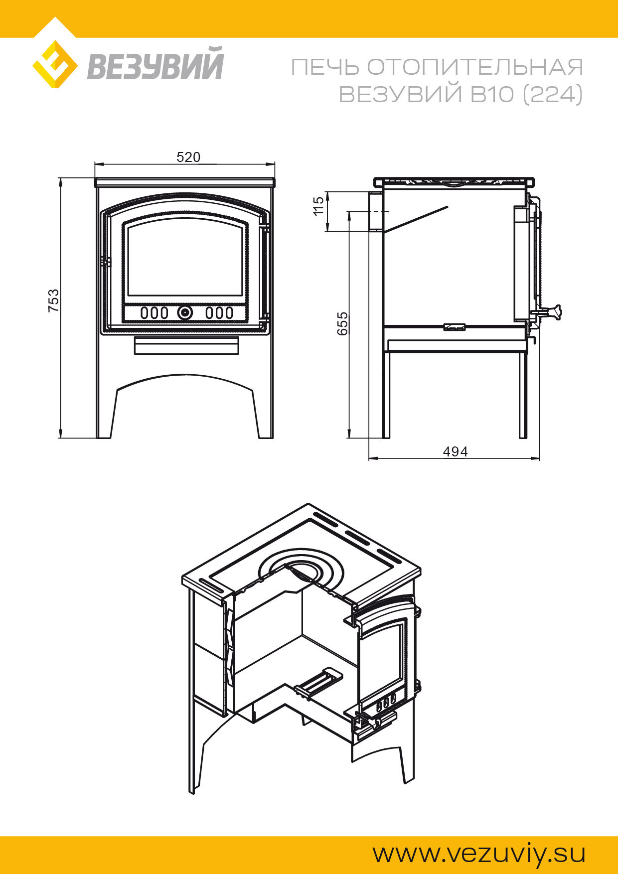Печь отопительная Везувий В10 (224) диаметр дымохода: 115 мм информация: