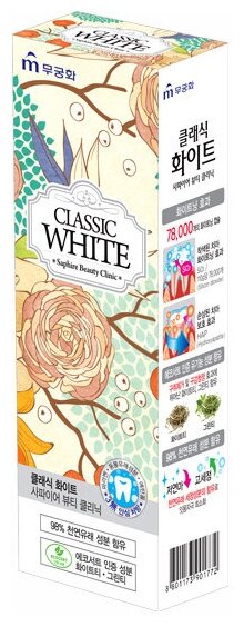 10 цен на Mukunghwa Classic White Saphire Beauty Clinic Отбеливающая зубная паста с ароматом мяты и зеленого чая 110 гр