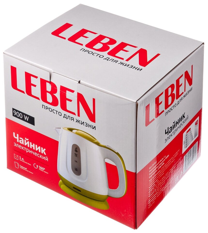 10 цен на Чайник электрический LEBEN 291-012 1л бело-салатовый