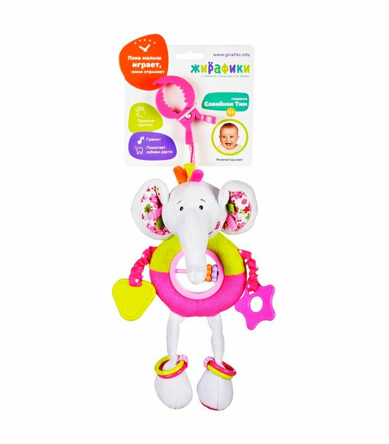 Подвесная игрушка Жирафики Слонёнок Тим (93596) белый/розовый/салатовый