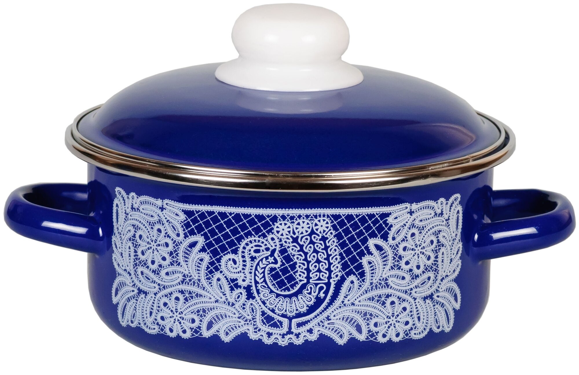 Стальэмаль Кастрюля Вологодское кружево 1,5 л, металлическая крышка, цвет синий