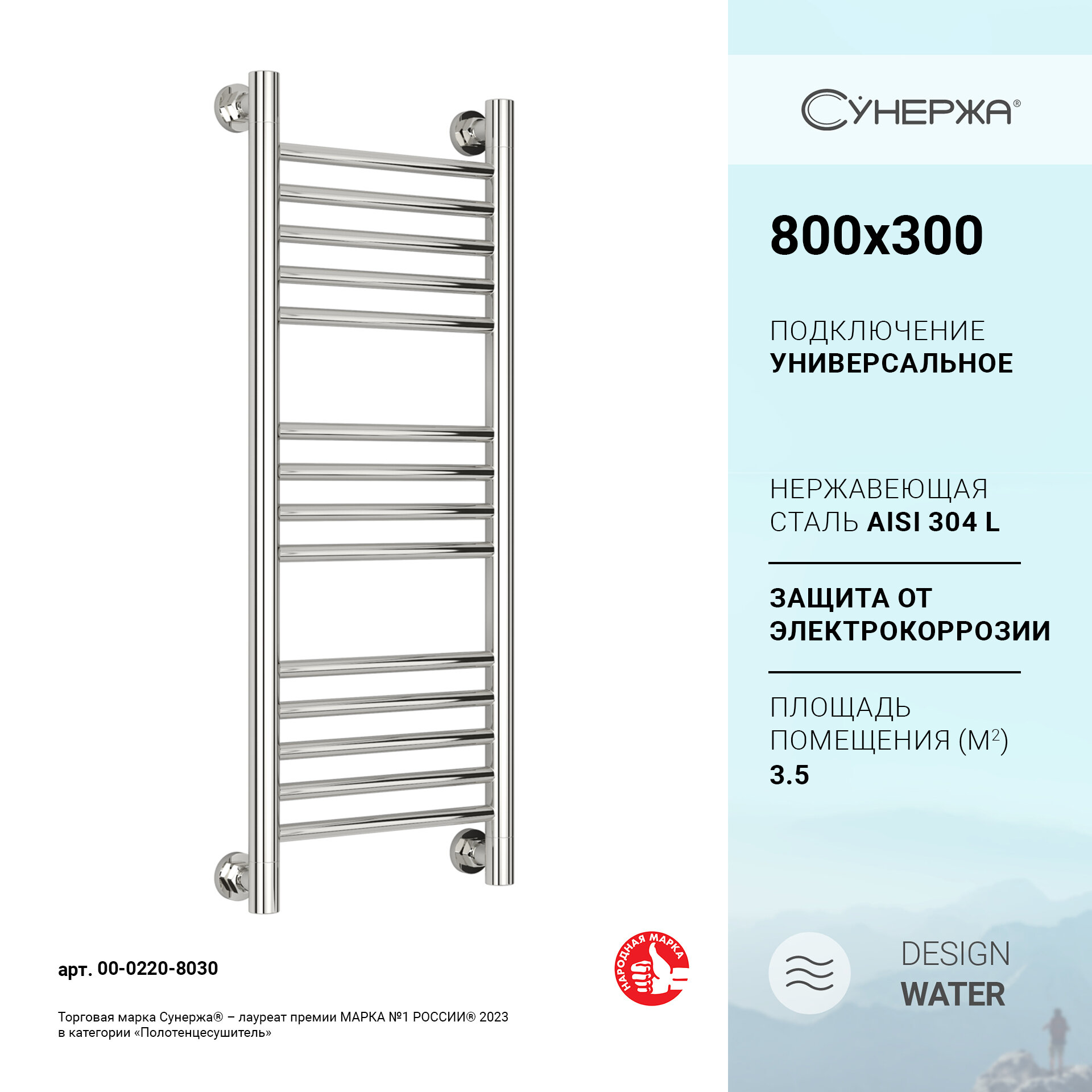 Водяной полотенцесушитель Сунержа Богема+ (прямая) 800x300 арт. 00-0220-8030