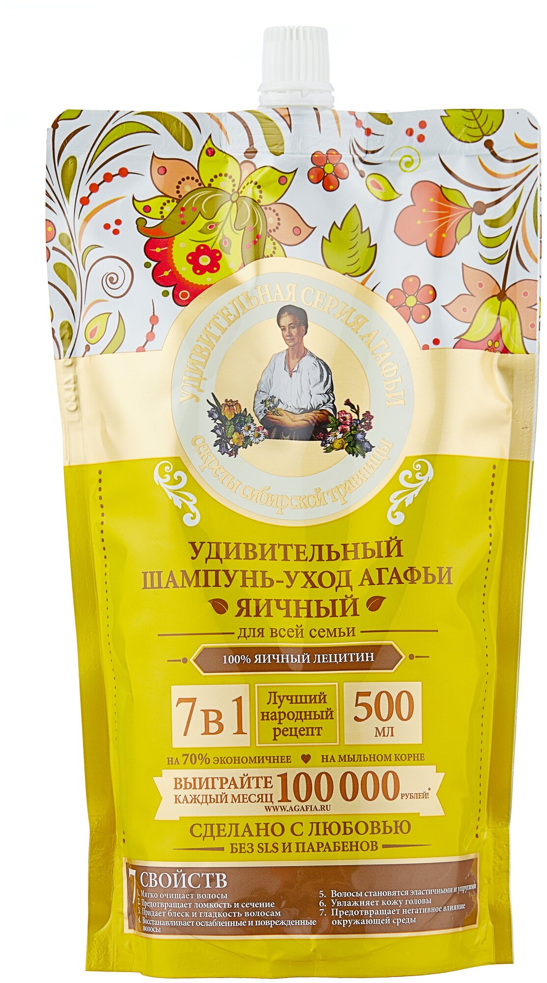 Шампунь для волос Удивительная Серия Агафьи «Яичный», 7 свойств, дой пак, 500 мл