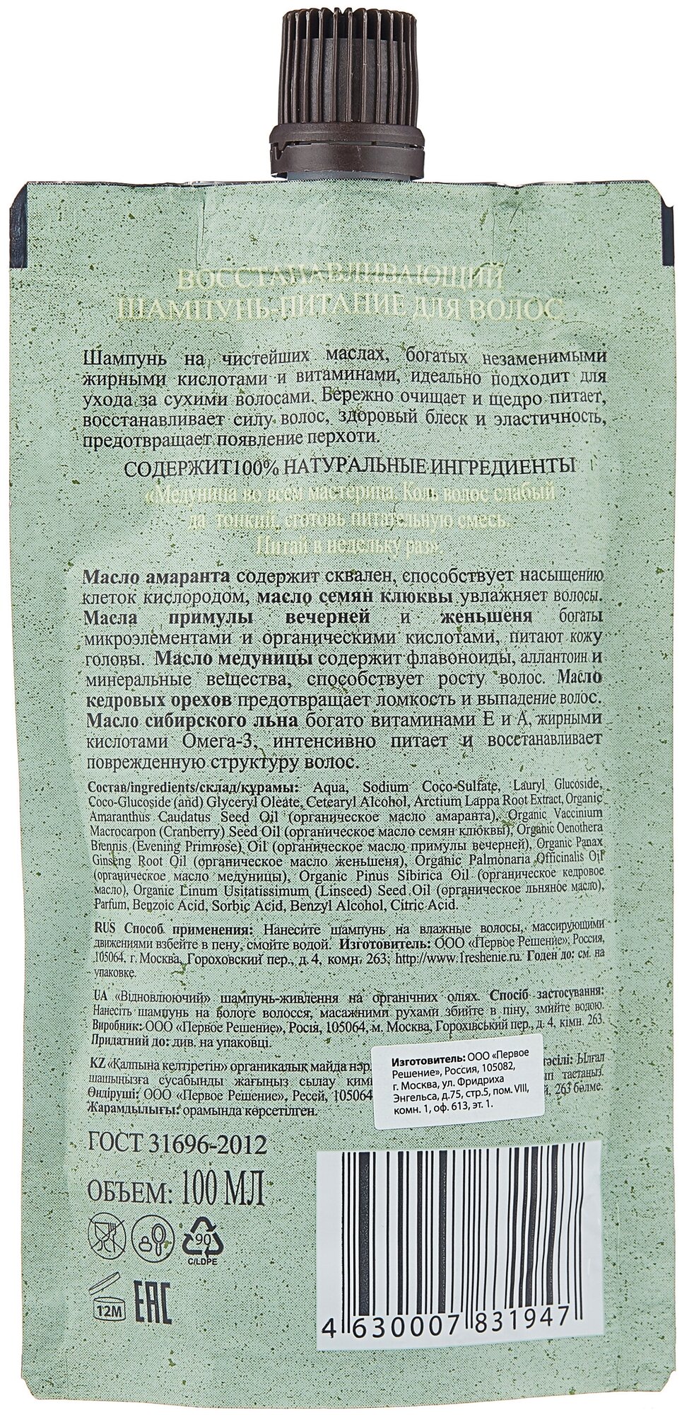 Банька Агафьи Шампунь-питание для волос восстанавливающий, дой-пак 100 мл