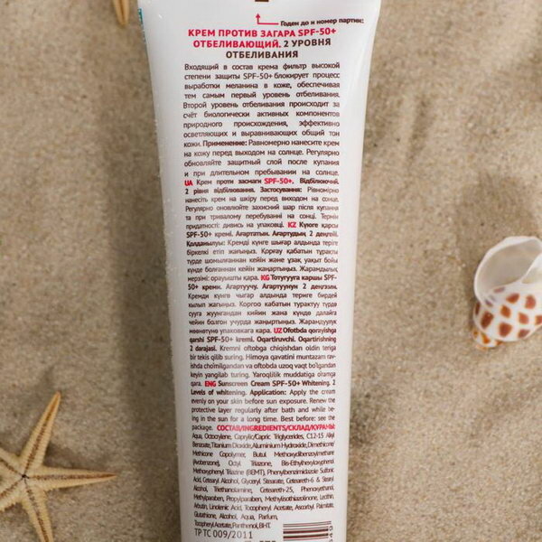Крем против загара "против загара" SPF-50+ Отбеливающий. 2 уровня отбеливания 100 мл информация: