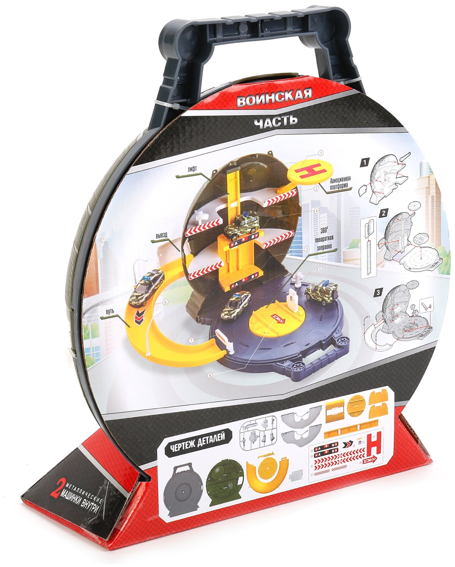 Технопарк Набор игровой Шар-парковка "Воинская часть" с 2-мя машинками (251598)