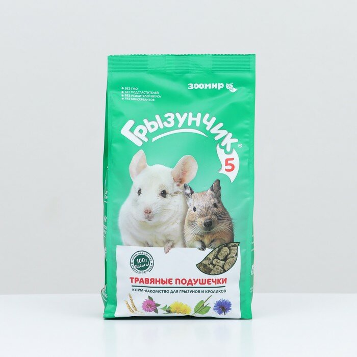Корм-лакомство "Зоомир Грызунчик 5" для кроликов и грызунов, травяные подушечки, 280 г информация: