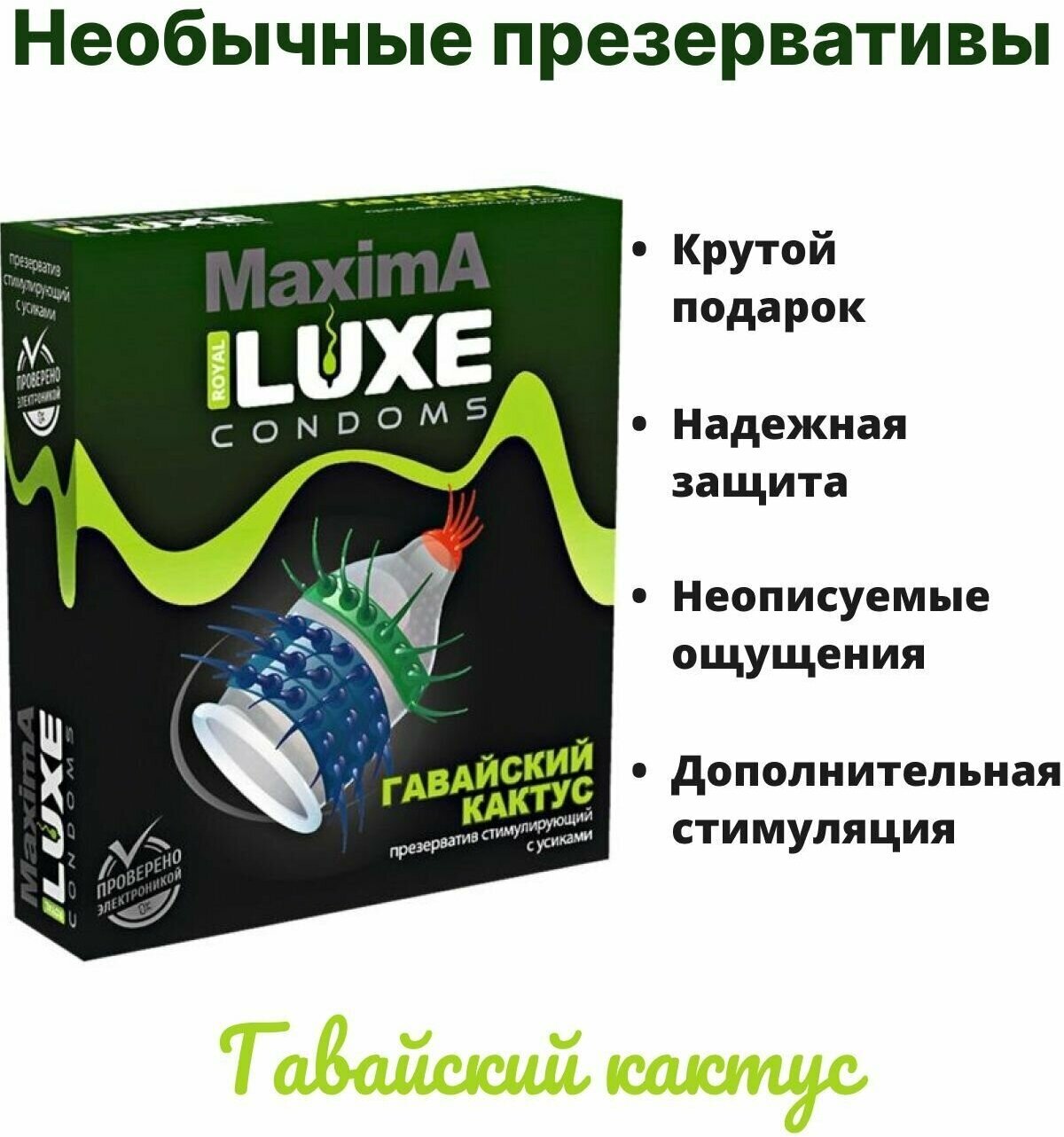 170 Luxe MaximA Гавайский Кактус. Презервативы с усиками. Упаковка по 1 шт.