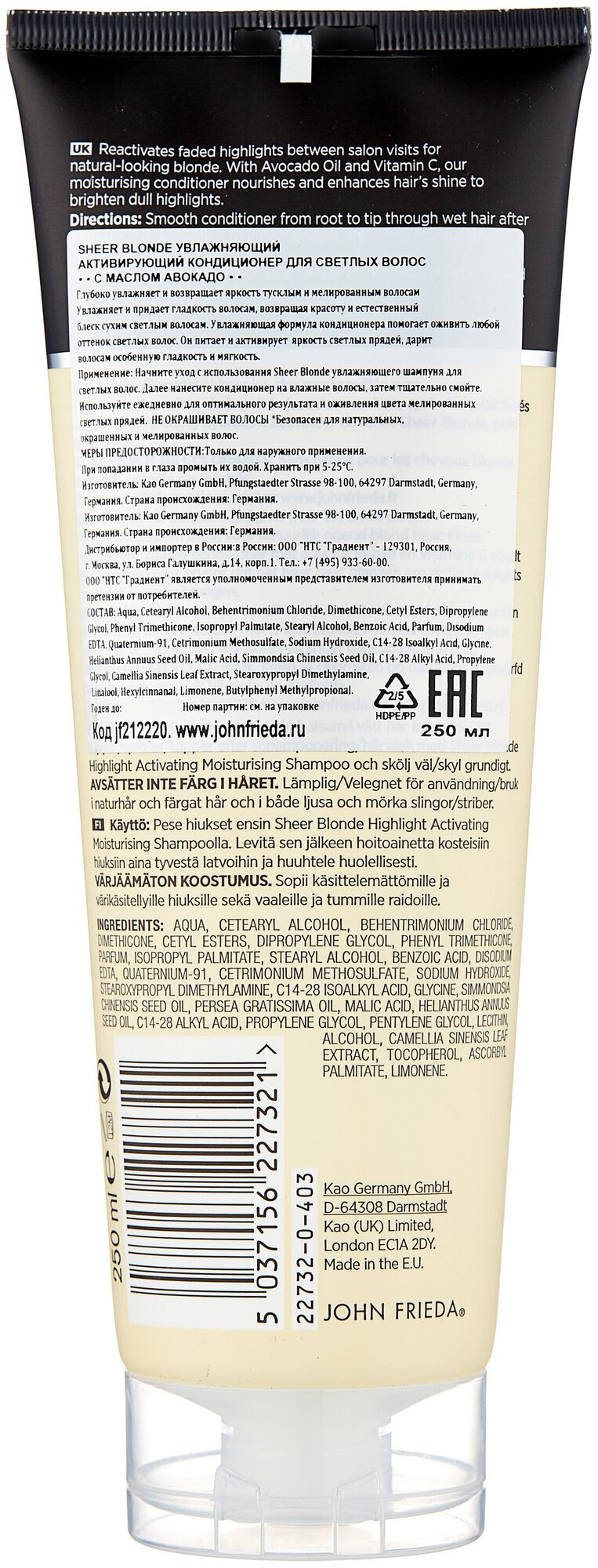 John Frieda кондиционер Sheer Blonde Highlight Activating Moisturising, 250 мл информация: