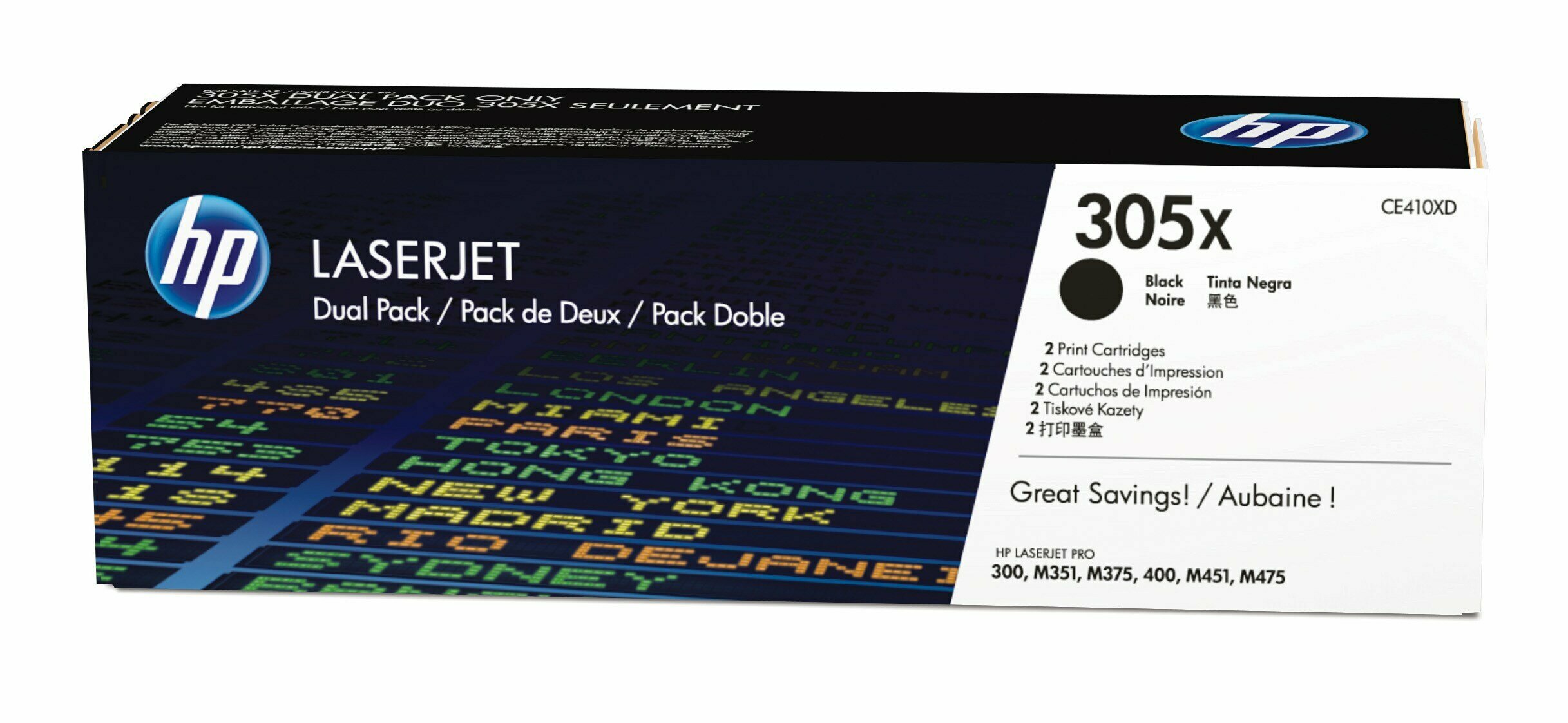 Тонер-картридж лазерный HP 305X, 2 шт. в упаковке, 2х4000 страниц, черный (CE410XD)