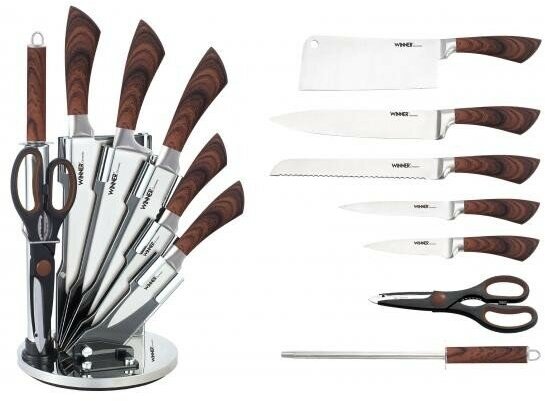 Набор Winner WR-73, 5 ножей, ножницы, точилка и подставка