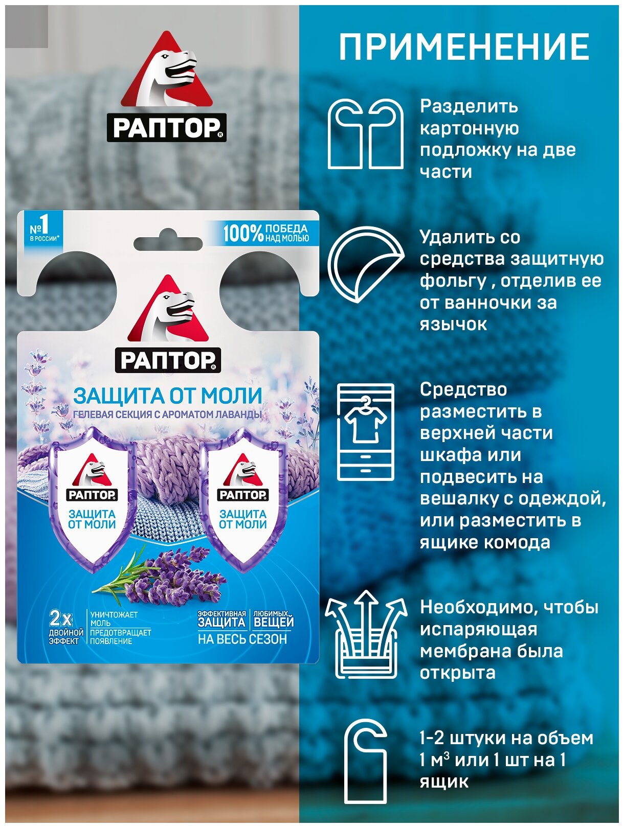 Секция от моли "Раптор", гелевая, двойной эффект, с ароматом лаванды, 2 шт информация: