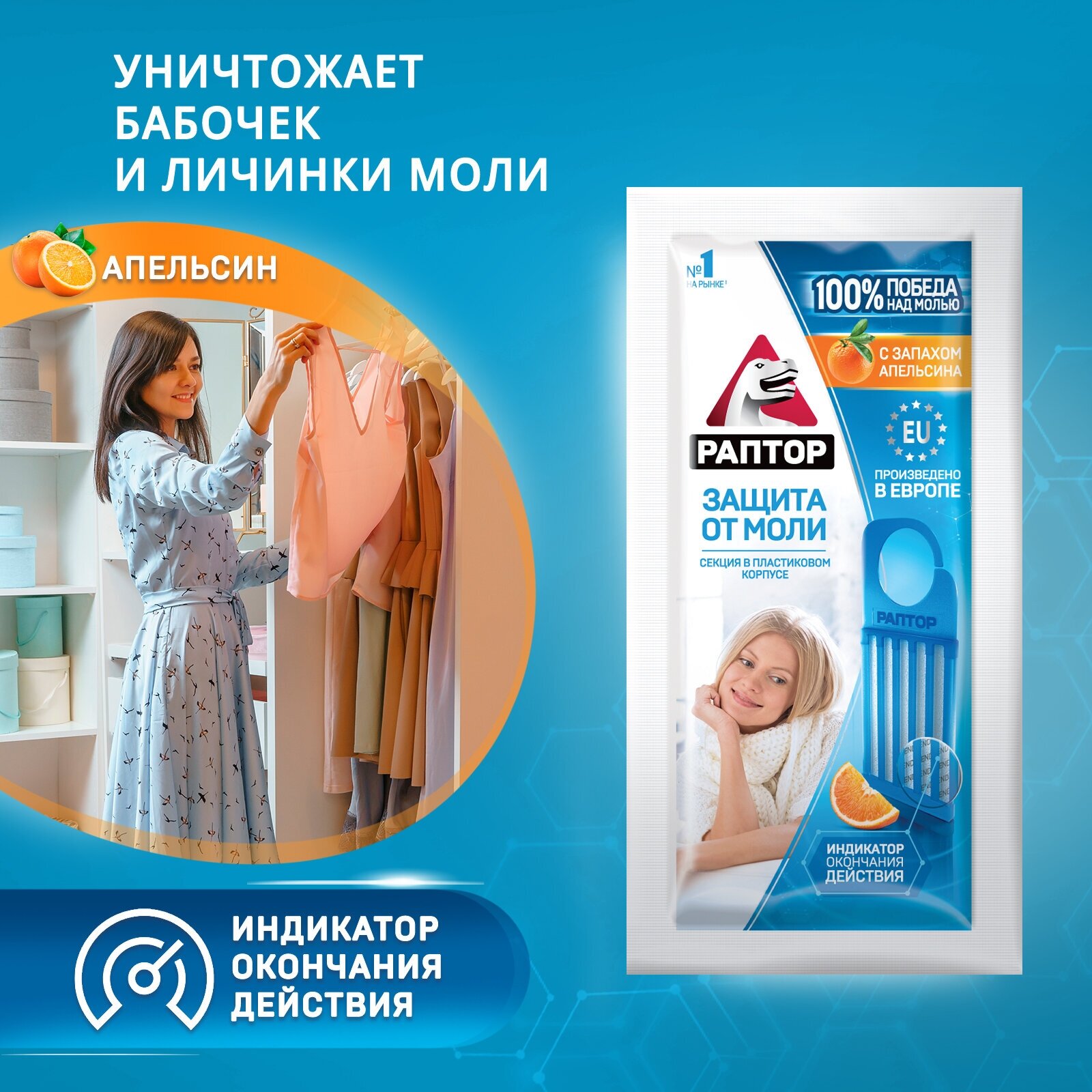 Защита от моли с запахом апельсина, раптор, секция в пластиковом корпусе, индикатор окончания действия