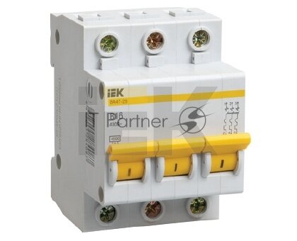 6шт. - Выключатель автоматический трехполюсный 63А D ВА47-29 4.5кА / IEK; арт. MVA20-3-063-D; оригинал / - комплект 6шт 5 932 ₽