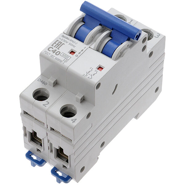 Выключатель автоматический модульный 2п C 40А 6кА OptiDin BM63-2C40-УХЛ3 КЭАЗ 260606 информация: