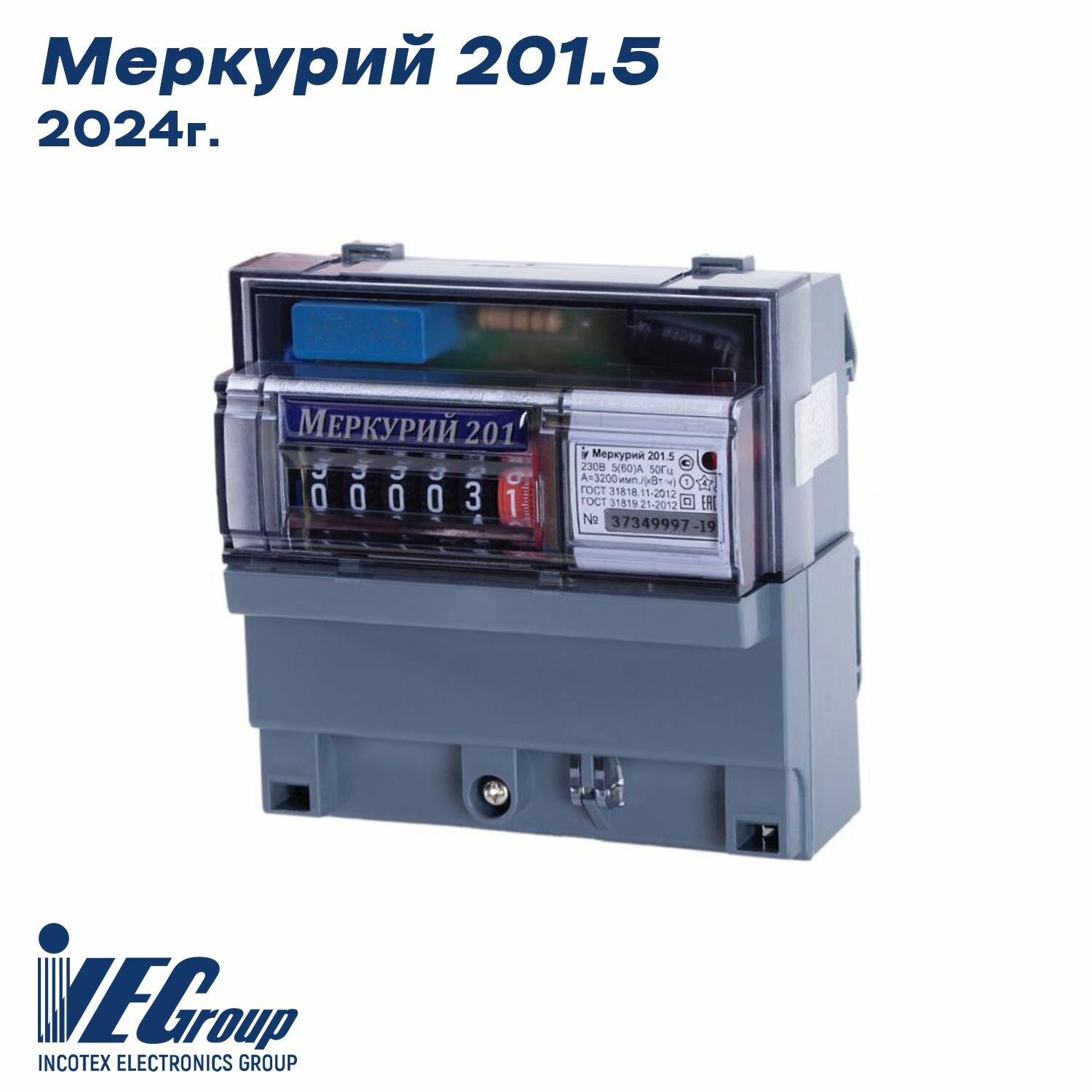 Счетчик Меркурий 201.5 1ф 5-60А класс точн. 1.0 1 тариф. импульс. вых. мех. ОУ Инкотекс 00000032419 информация: