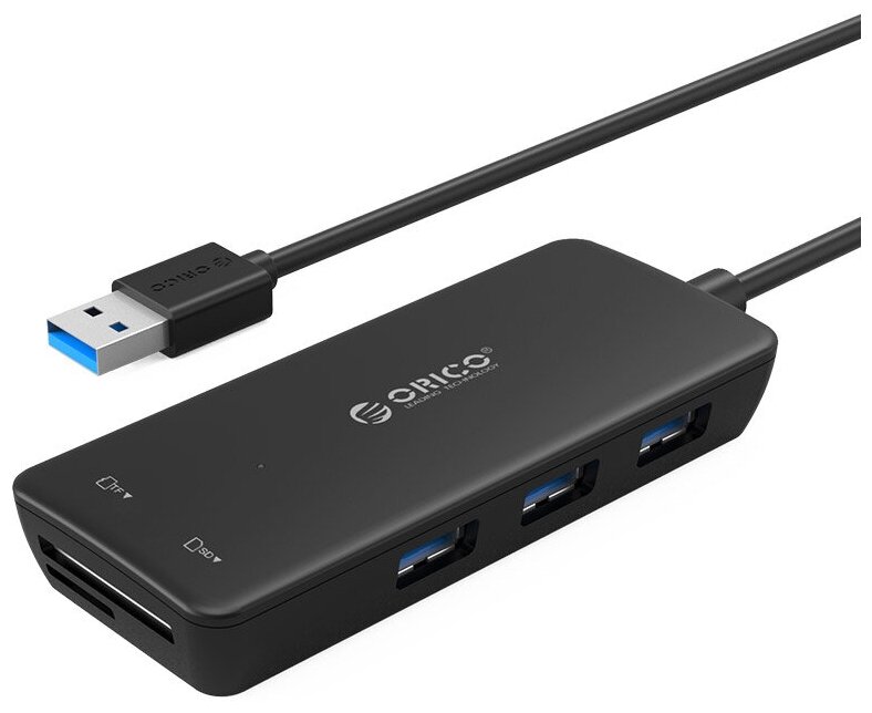 USB-концентратор + картридер 3xUSB-A 3.0/SD/MicroSD Orico H3TS-U3, черный [ORICO-H3TS-U3-BK]