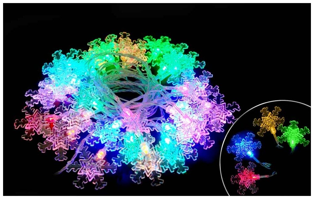 Электрогирлянда Снежинки LED-SF-30-3-MC (30 светодиодных ламп, длина 3м, многоцвет) (101573) информация: