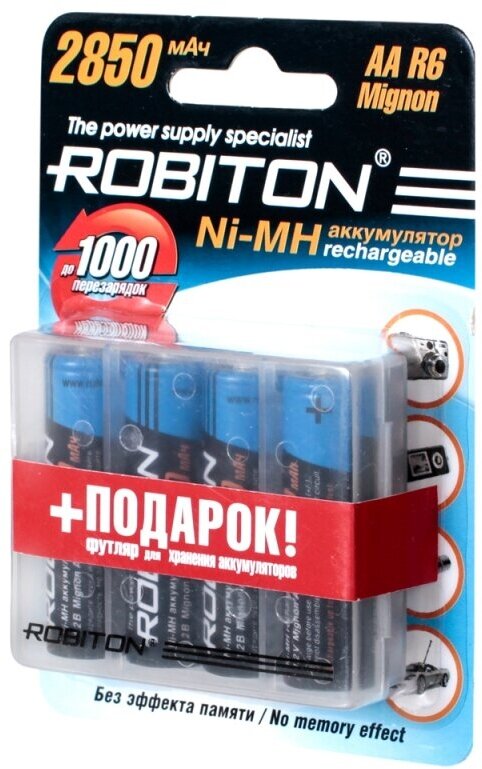 Robiton Аккумулятор Robiton Ni-MH AA 2850mAh BL4 + футляр, 4шт (2850MHAA-4/box) 2 440 ₽