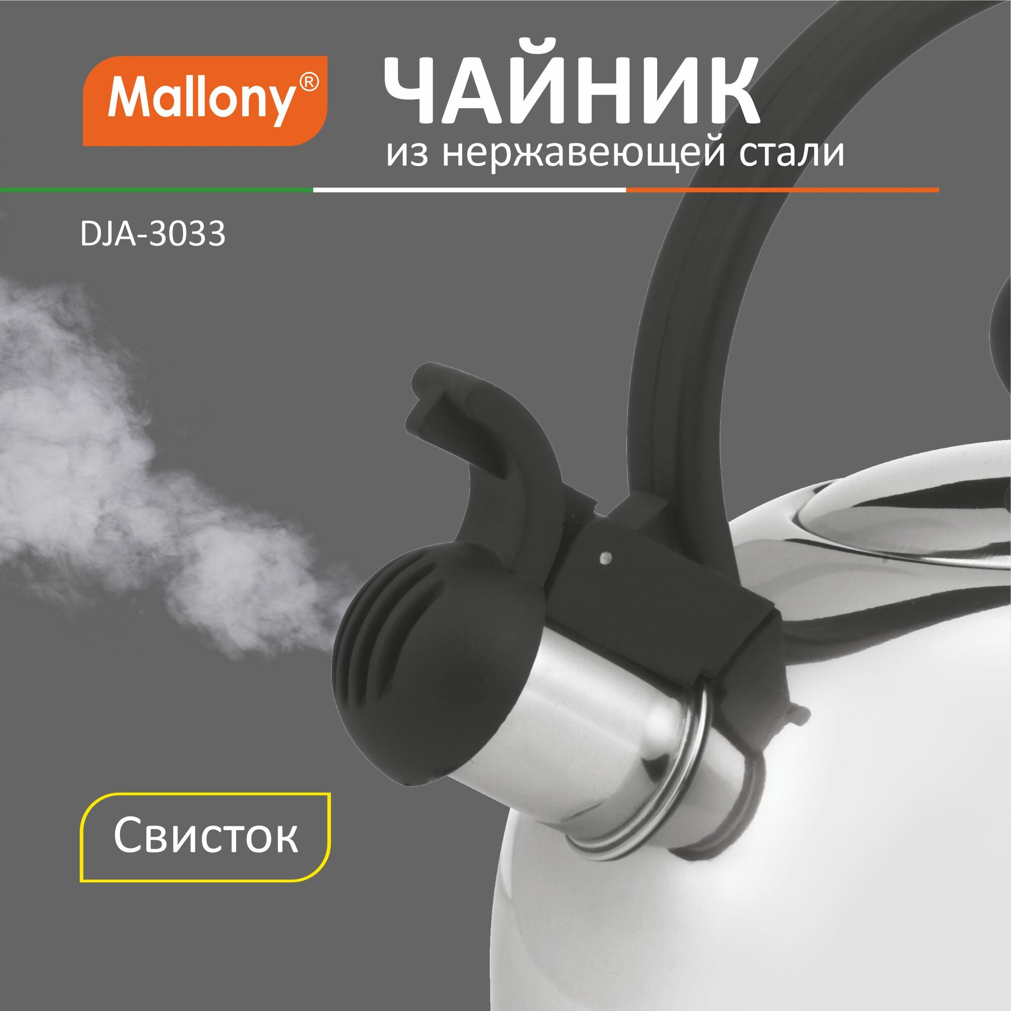 Mallony Чайник со свистком DJA-3033, 3 л, серебристый