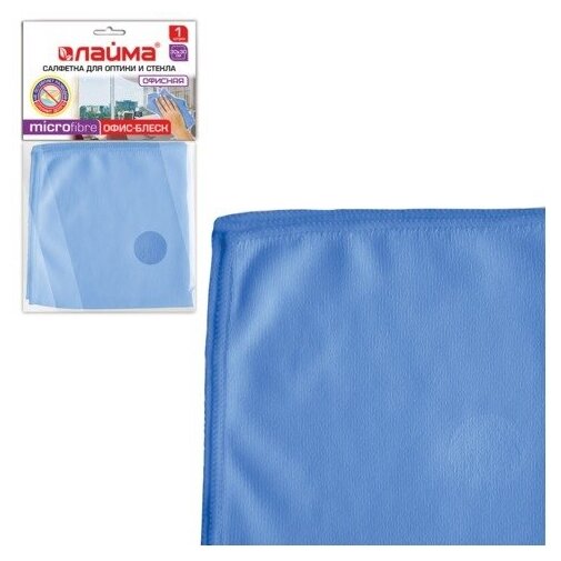 Салфетка для оптики, стекла лайма "Офисная", плотная микрофибра, 30х30см, синяя, 601256, 1 шт информация: