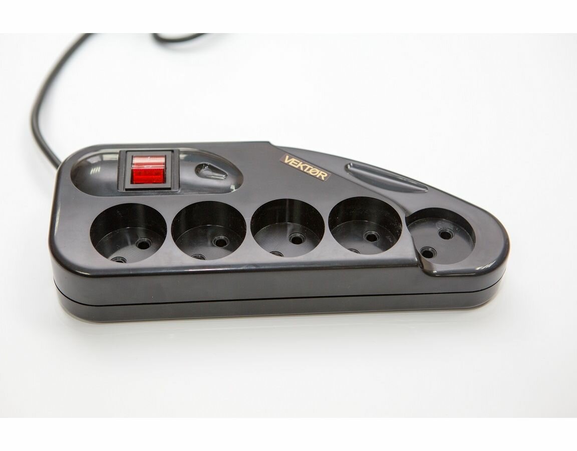 Сетевой фильтр VEKTOR Lite, 5 розеток, 3 м, б/з, 10А черный