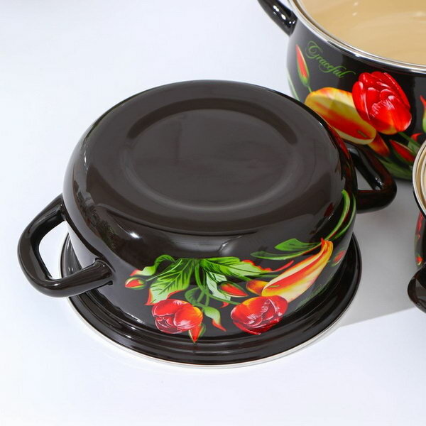 Набор кастрюль Сибирские товары Пионы, эмалированные, 2, 3 и 4 л