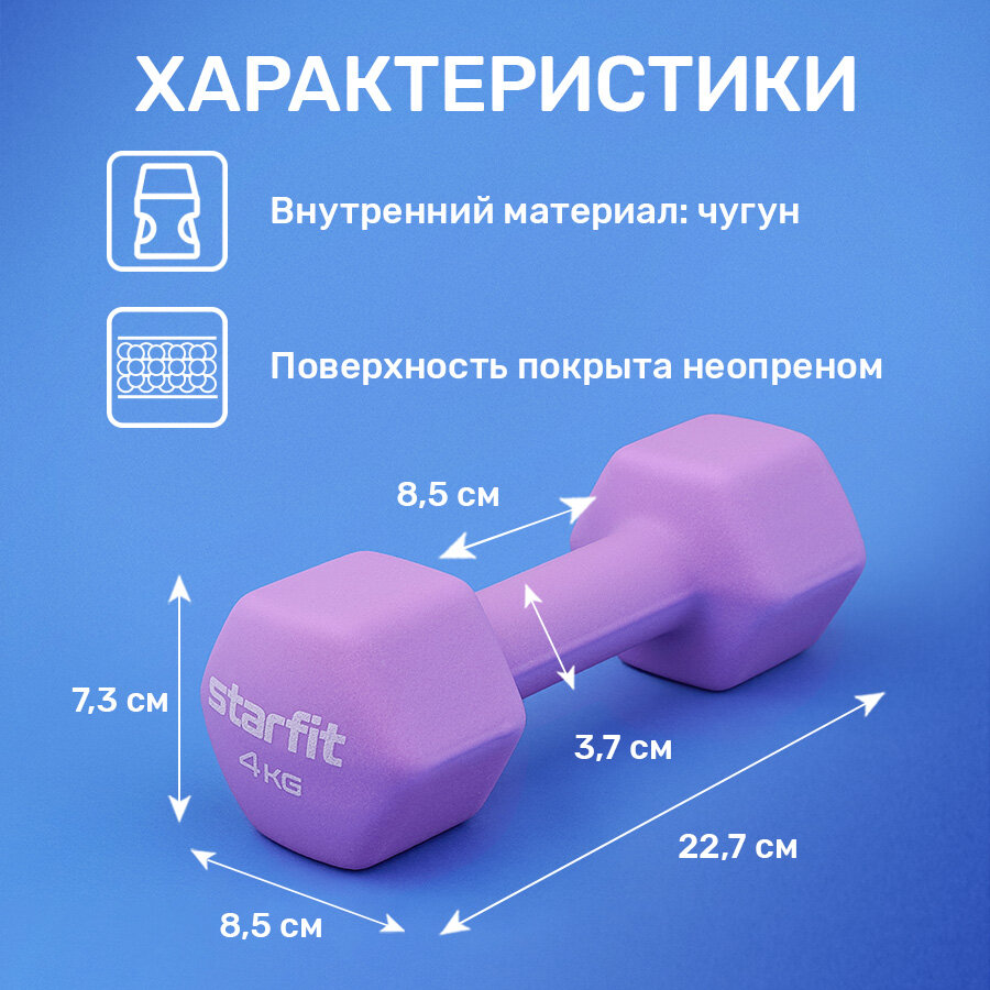 Гантель неопреновая Starfit Db-201 4 кг, фиолетовый пастель информация: