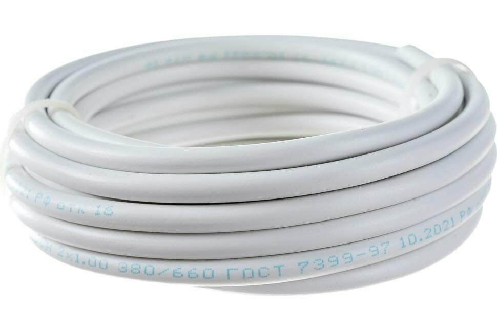 10 цен на Провод соединительный ПВС REXANT 2x1,0 мм2, белый, длина 5 метров, ГОСТ