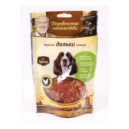 Деревенские лакомства д/собак Куриные дольки нежные, 100 г информация: