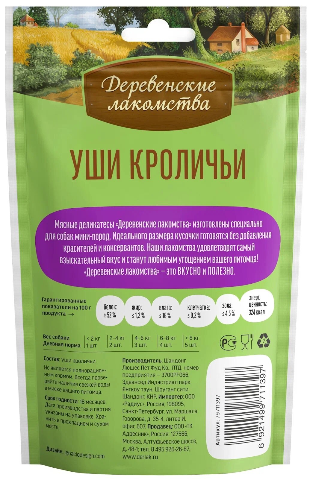 Уши кроличьи "Деревенские Лакомства" для собак, мини-пород, 15 г информация: