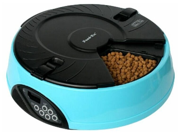 Автоматическая кормушка для кошек и собак на 6 кормлений с ЖК-дисплеем Feed-Ex, голубая (1 шт)