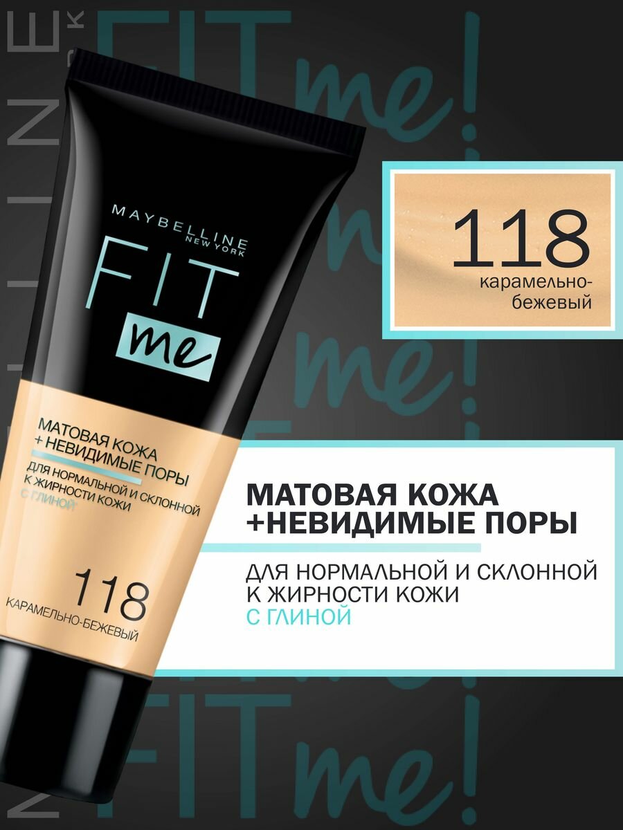Fit Me! Матирующий тональный крем для сужения пор, тон 118 Карамельно-бежевый, 30 мл