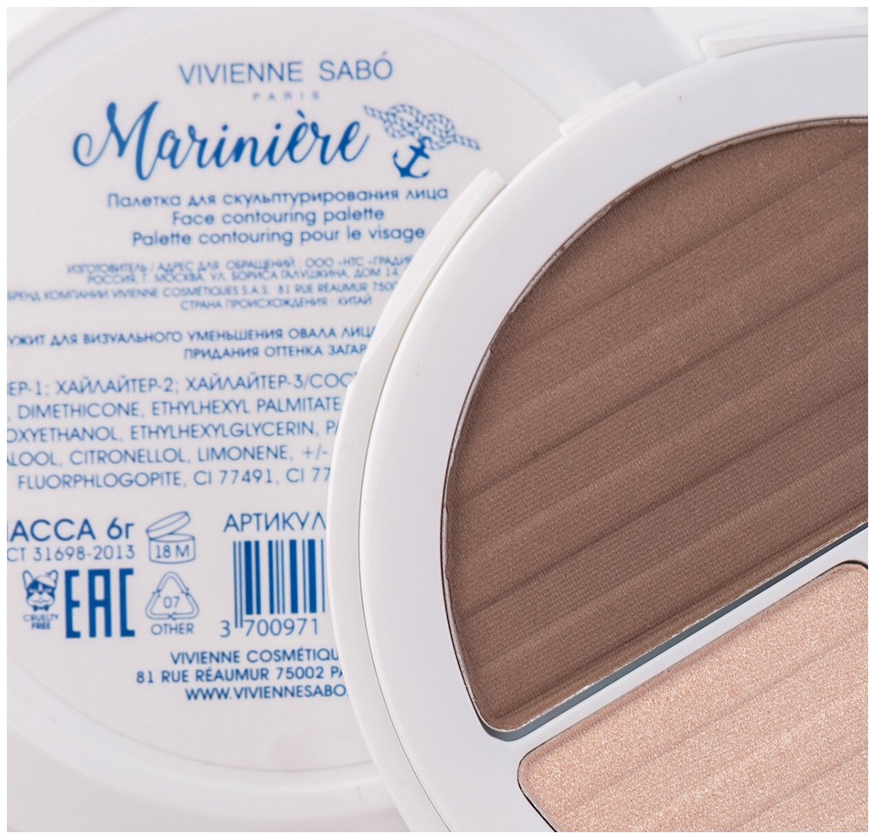 Палетка для скульптурирования лица VIVIENNE SABO Mariniere, тон 02 370 ₽