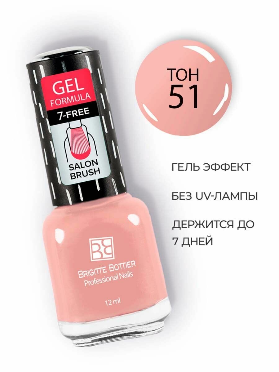Лак для ногтей Brigitte Bottier Gel formula, тон: 51 цветущий персик, 12мл