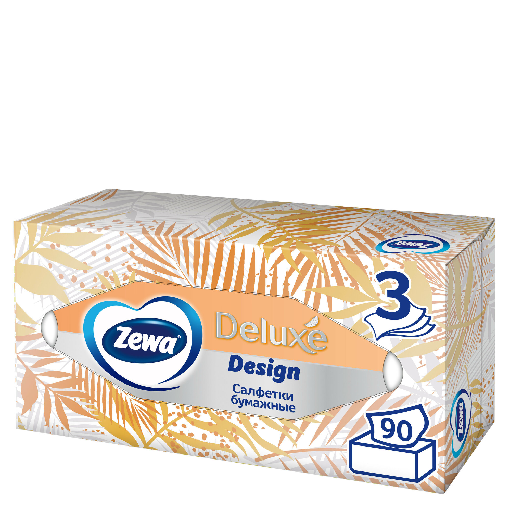 Салфетки Бумажные в коробке Zewa Deluxe Дизайн, 3 слоя, 90 шт.