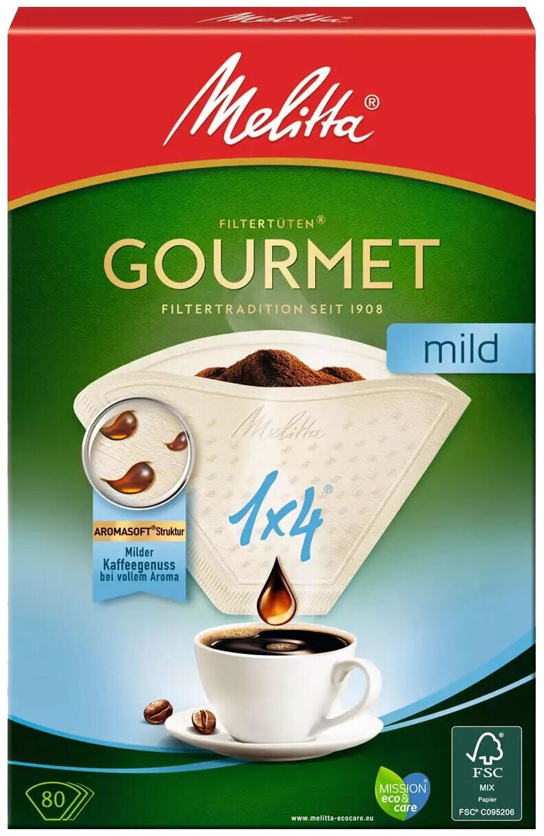 Одноразовые фильтры для капельной кофеварки Melitta Gourmet Mild Размер 1х4 (80 шт.)