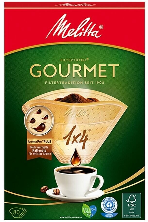 Фильтры бумажные MELITTA для заваривания кофе 1х4/80 гурме, коричневые (0100970)