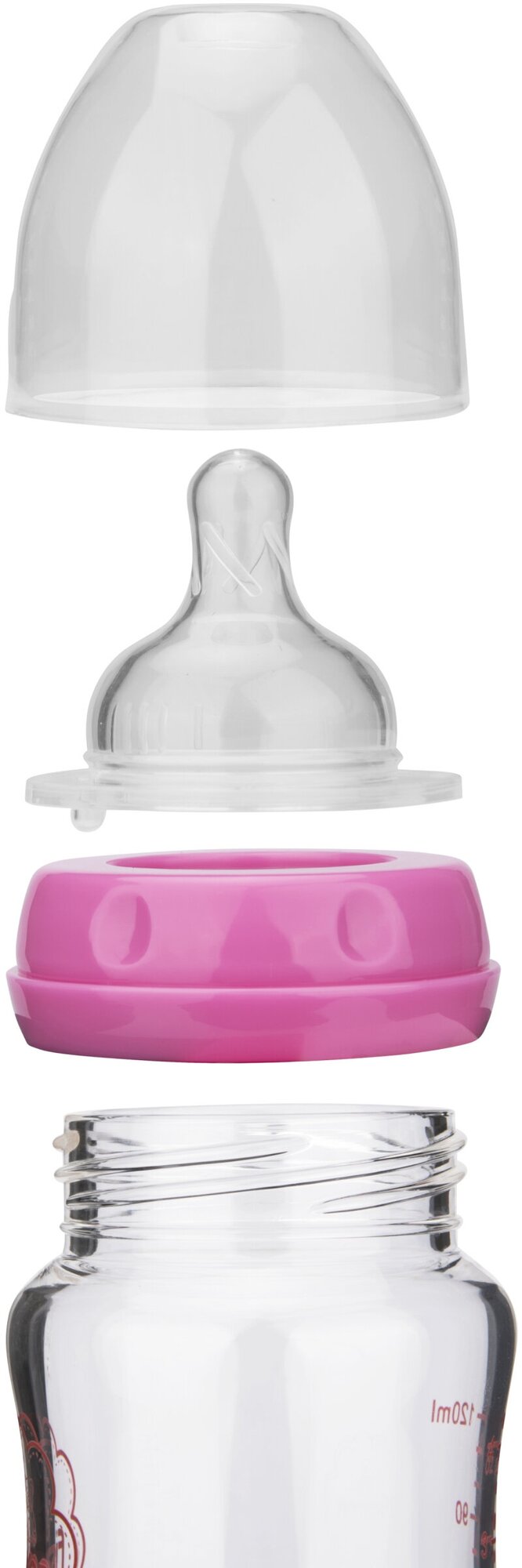 Бутылочка Fissman для кормления с широким горлышком 120 мл, цвет розовый (жаростойкое стекло) (9167)