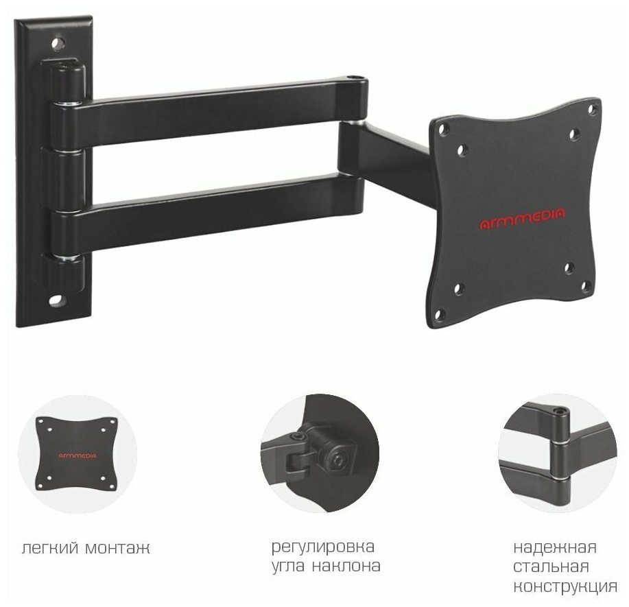 Кронштейн для телевизора Arm Media LCD-7101, 10-26", настенный, поворотно-выдвижной и наклонный, черный [10014] 1 720 ₽