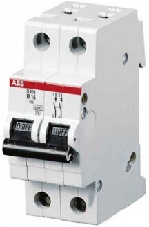 Автоматический выключатель ABB S202 C16 ампер, 2-полюсный, характеристика C