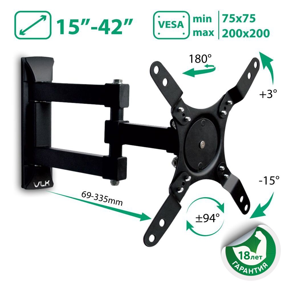 Кронштейн VLK TRENTO-105, для ТВ, наклонно-поворотный, 15-42", 60-325 мм от стены, черный информация: