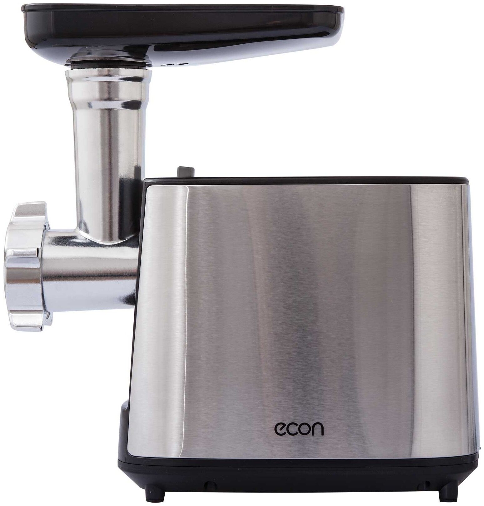 Мясорубка электрическая Econ с 2 насадками-овощерезками и решетками 5 и 7 мм, производительность 1,8 кг/ мин, реверс, 1600 Вт