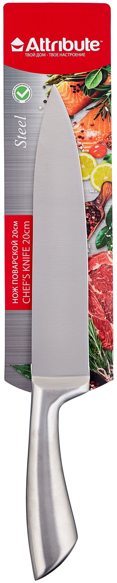 Нож кухонный Attribute Steel, поварской, лезвие 20см, 1шт. (AKS528) информация: