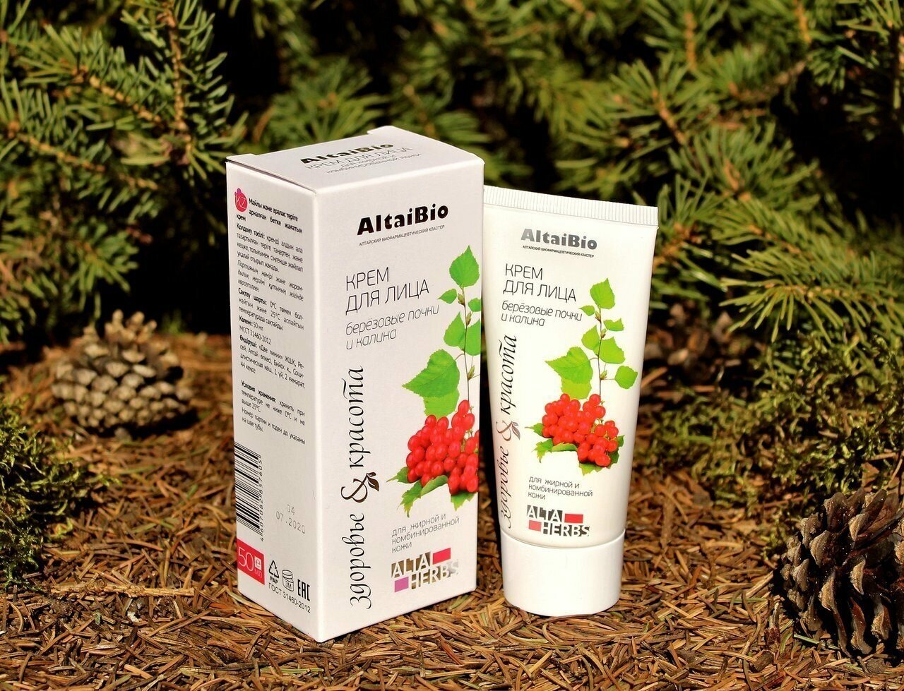 Алтайбио крем для лица для жирной и комбинированной кожи (березовые почки/калина), 50 мл