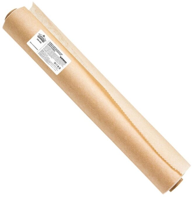 Пергамент для выпекания, силиконизированный натуральный, коричневый, Горница, 38см*50м (в пленке), широкая, евросырье, плотность - 41 г/кв.м, с двухсторонней силиконизацией, до + 280 °C