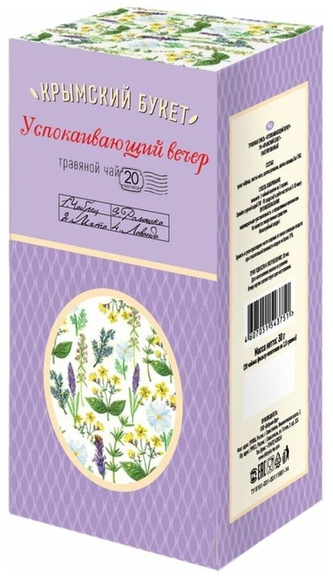 Чай травяной крымский букет 20п*1,5г/Успокаивающий/Добрыня-Русь информация: