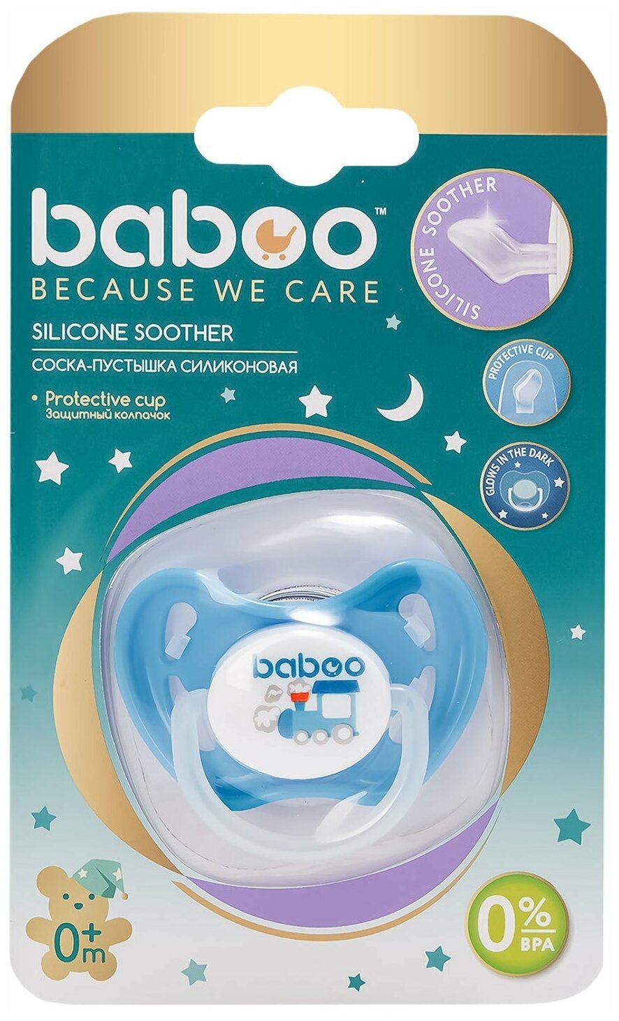 BABOO Пустышка силиконовая анатомическая ночная Транспорт 0+ информация: