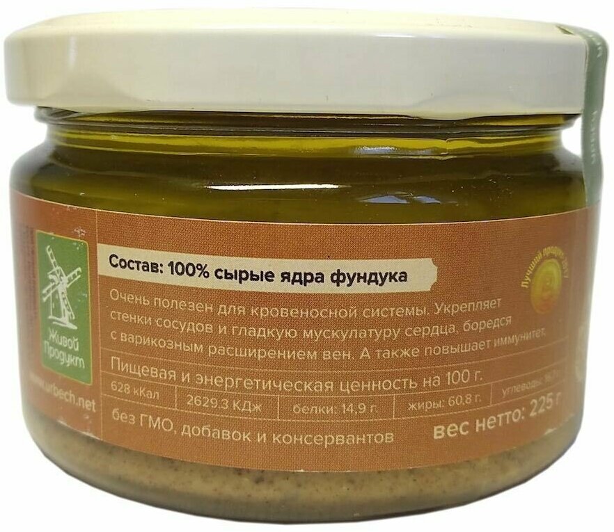 Урбеч Живой Продукт из ядер фундука, 225 г